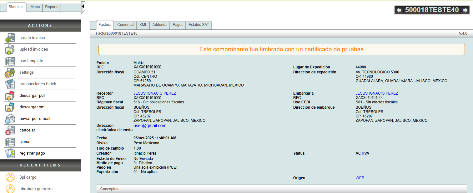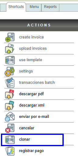 The "Clonar" option allows you to make an exact copy of a previously generated e-document. This option is very useful when you need to invoice your client for the same products that you previously invoiced on another receipt. This way, you can generate an electronic invoice in just a few seconds.