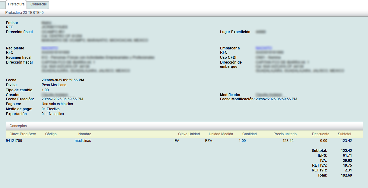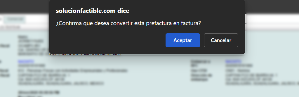 In the menu, to the right of the "Cancelar" button, select the "Prefactura" option. The fields are exactly the same as those of a regular invoice; once you have filled in the fields, save the pre-invoice.