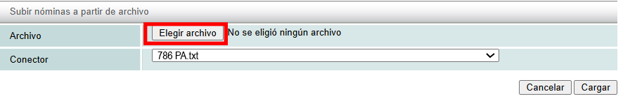 The window for uploading the connector file containing the payment information will appear.