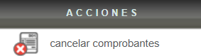 Click the "Cancelar Comprobantes" button in the Acciones menu.